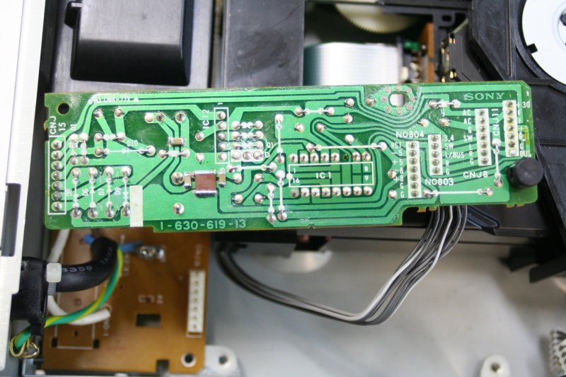 右写真はデジタル系基板の反対側の基板を裏返したものです。この基板は電源部というよりは半分はヘッドホンアンプで構成されています。こちらは片面基板でデジタル系とは異なりハンダ付けの劣化は見られません。 |