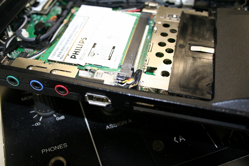 | あとはキーボードを載せるなどして元に戻します。右写真のようにまったく違和感がなく仕上がりました。実際に外付け音源を接続して運用してみたところ、実に安定して動作しております。 本記事はいとも簡単にノートPCを壊す危険を有する特にハイリスクな作業です。ご自分でなさる場合は自己責任であることはもちろんですが、よく作業の性質を理解してから取り組まれますよう願います。 |
